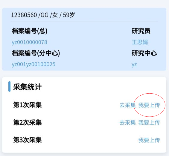 在受试者首页,可以查看受试者的档案信息及信息采集情况。