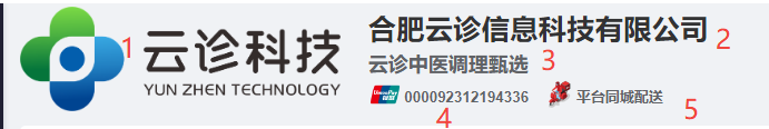 1.1:企业logo;2:企业名称;3:企业商城名称;4:企业银联商户号;5:企业支持同城配送(以上信息均是运营端添加企业时填写的信息);