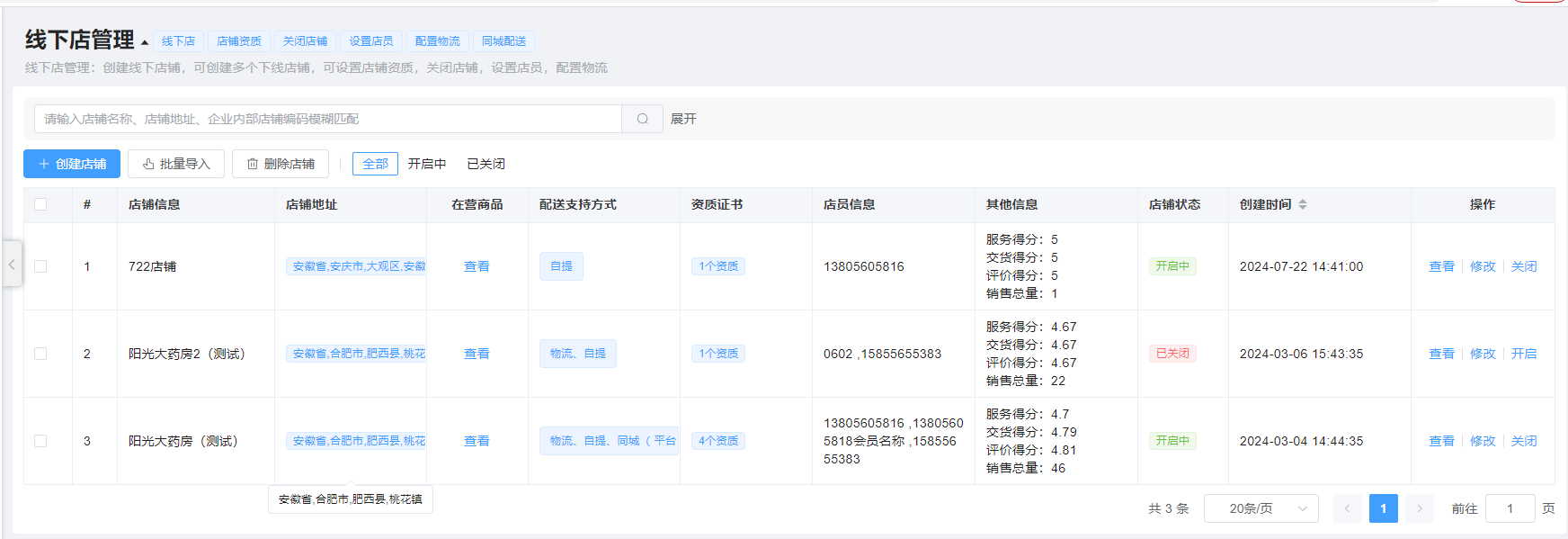 1.点击【创建店铺】按钮,进入线下店铺添加页面